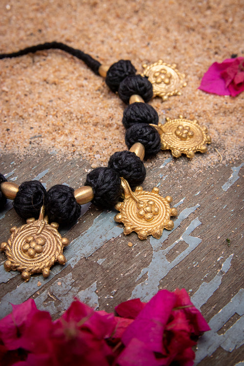 Black Gold Tone Circle Big Brass Pendant Necklace G19