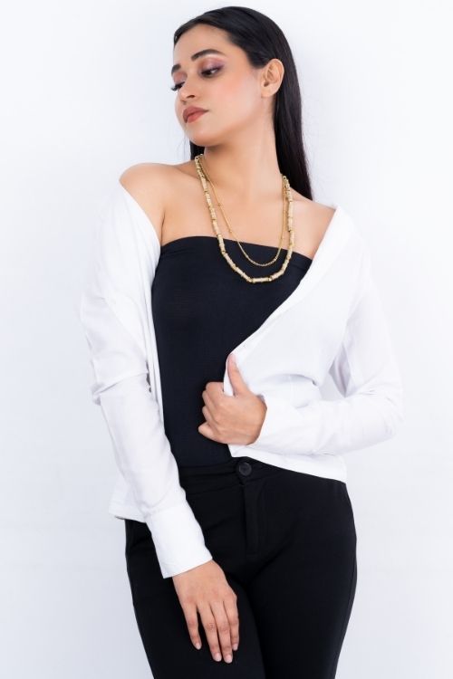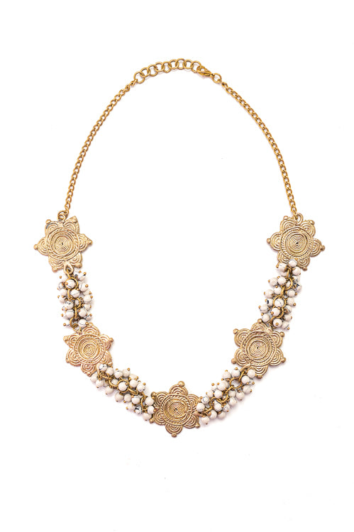 Miharu Brass Dokra Charms Multi Layered Necklace (White)