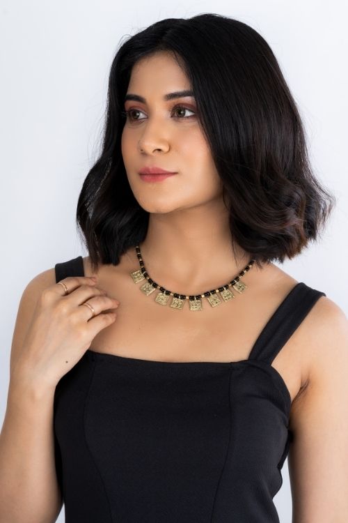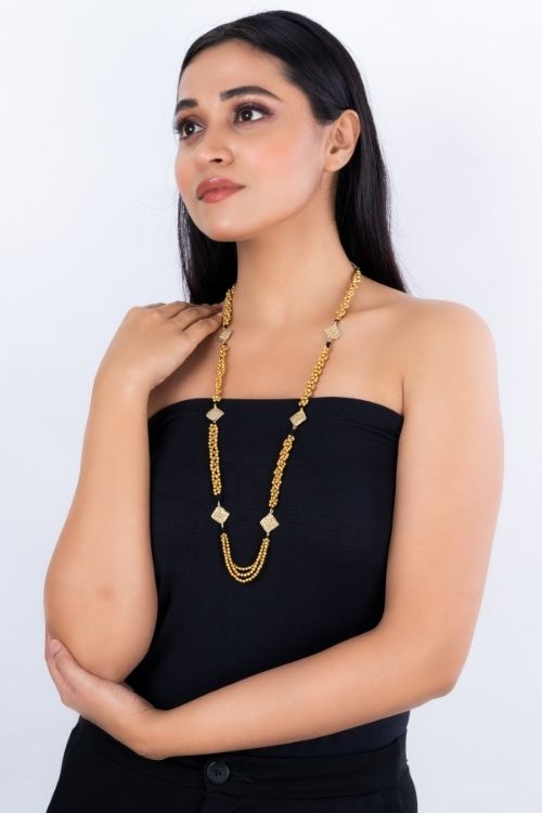 Miharu Square Motif Golden Beaded Dokra Necklace