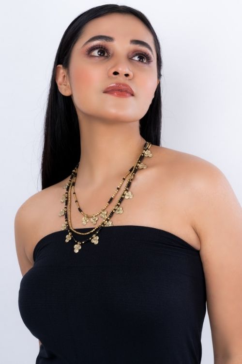 Miharu Floral Dokra Charms Multi Layered Necklace (Black)