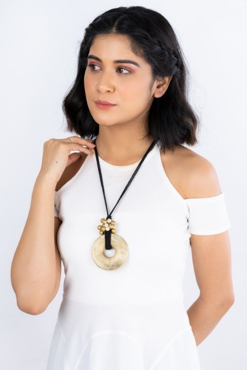 Miharu Big Circular Pendent Long Adjustable Necklace