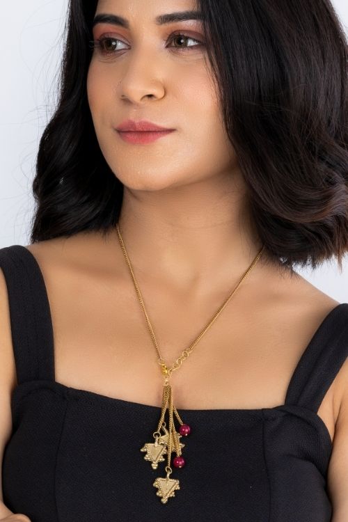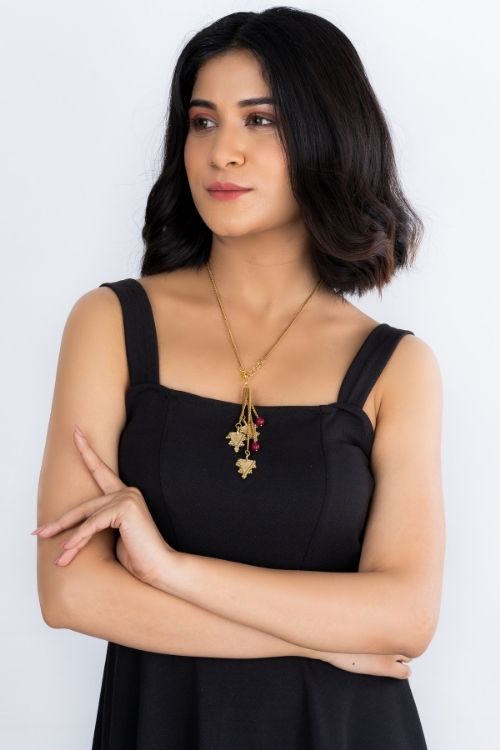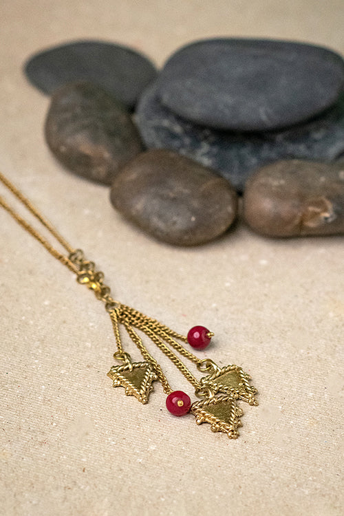 This is an adjustable handcrafted Gold Chain with Brass Leaf Pendant and Pearls