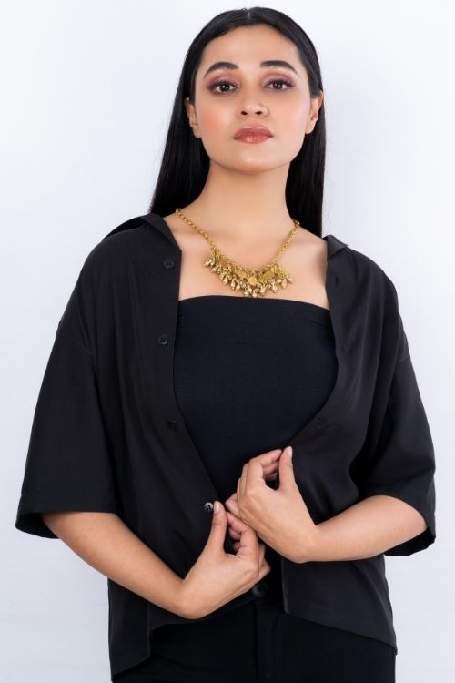 This handmade necklace made with bead and recycled brass. They are made by a combination of Patwa work and Dokra craft - old Indian crafts.