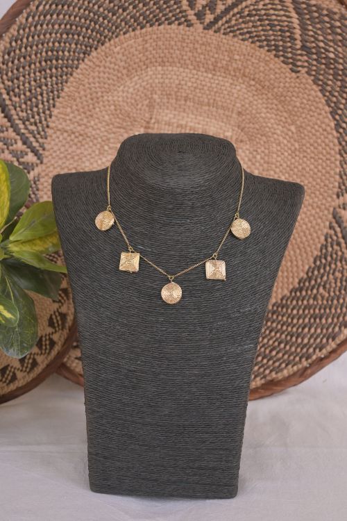 Golden chain at the back. The beads are handmade in traditional techniques and might have a slight authentic irregularity to themselves.